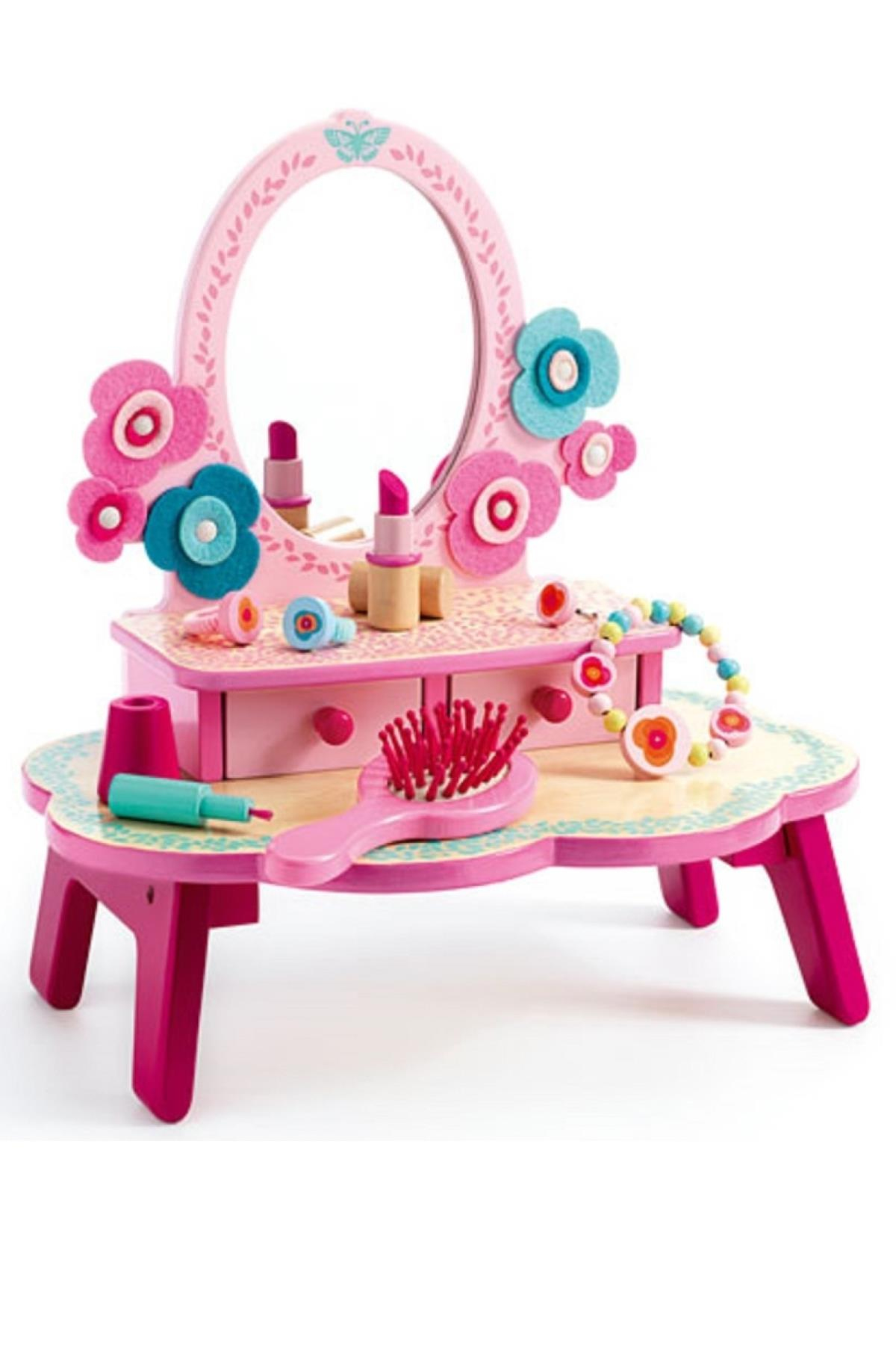 Kendinizi nasıl hissediyorsunuz? Djeco'nun çiçek desenli makyaj masası, herhangi bir odada zarif bir şekilde kullanabileceğiniz pratik bir tasarıma sahiptir.