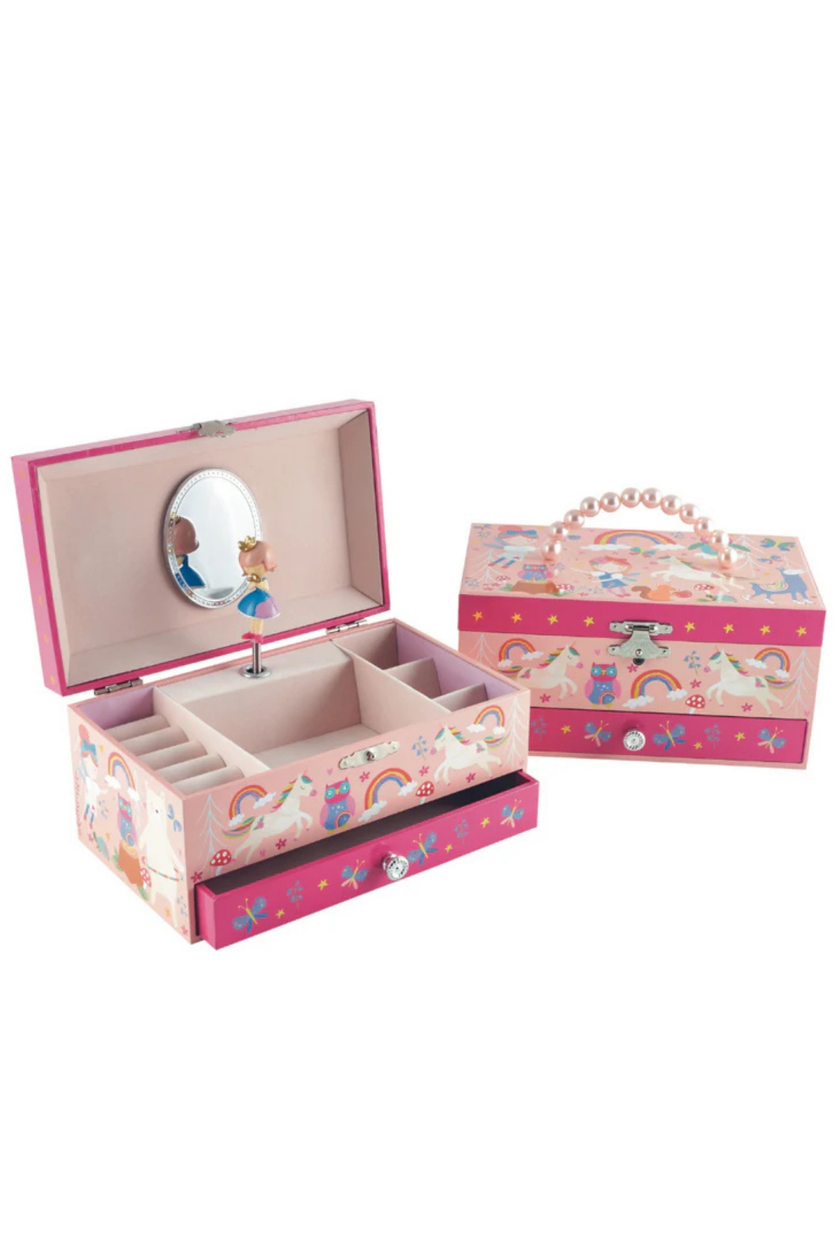 Floss & Rock'ın melodi dolu mücevher kutularını kesinlikle çok beğeneceksiniz! Floss & Rock'un müzikli mücevher kutuları, unicornlar, flamingolar, parlak saçlı deniz kızları ve daha fazlasının harika tasarımlarıyla süslenmiştir. Bu kutular, çocukların değerli eşyalarını saklamak için geniş bir alan, çekmece, ayna ve bir dans figürü içerir. Çocuklar ve içlerindeki çocuk ruhu hiç kaybetmeyen yetişkinler için harika bir hediye seçeneği olan bu kutuların melodisini dinlemek için sadece arka kısmından kurmanız yeterlidir.