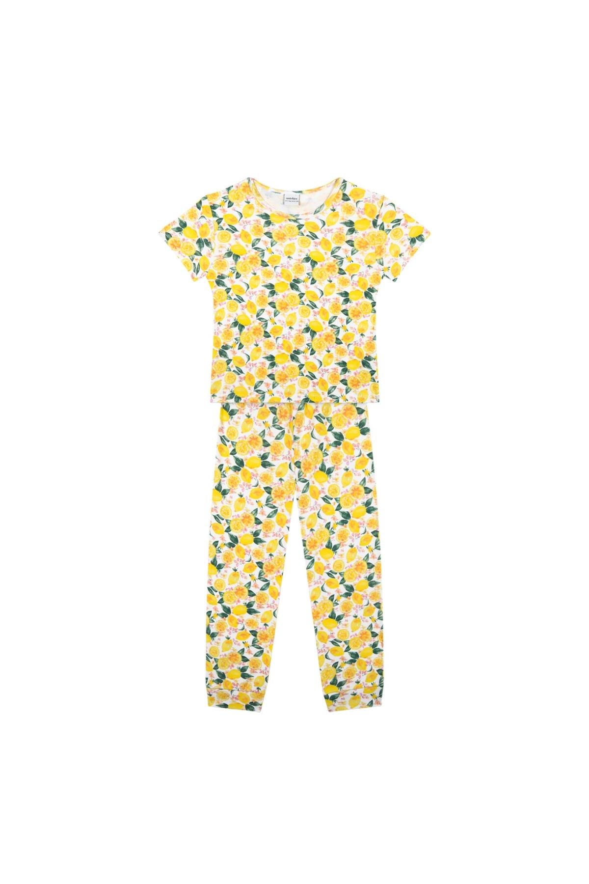 İki parça kısa kollu üst ve elastik bel uzun alt pijama seti.