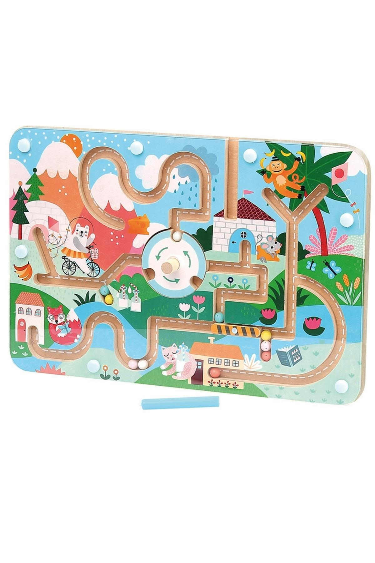 Bu oyuncak aynı zamanda ilişkilendirme ve mantık oyunu olarak işlev görür. Çocuklar, uzamsal tanımlamayı geliştirirken renkleri öğrenir ve kelime dağarcığını zenginleştirirler. Boyutları 30,5 x 2,5 x 21 cm olan bu set, manyetik bir labirent ve bir manyetik kalem içerir.